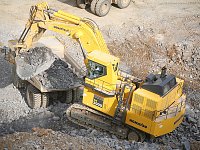 Скорость поворота платформы 4,8 об/мин Макс. скорость передвижения 2,7 км/час Вместимость ковша (SAE) 11 м3 Эксплуатационная масса 195 000 кг Мощность на маховике (SAE) 728/1800(970) кВт/л. с.